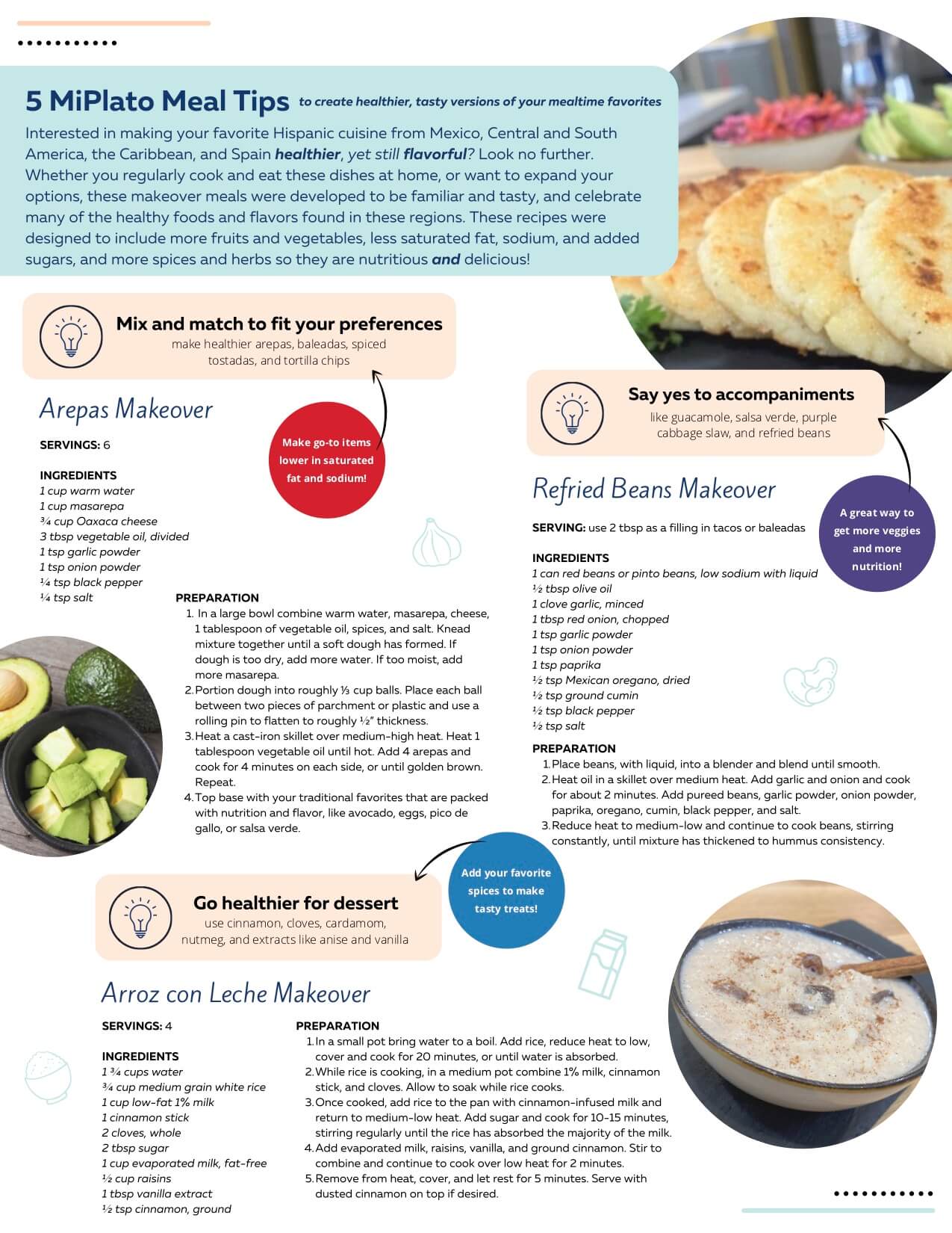 This resource includes healthier versions of recipes for ten traditional Hispanic dishes that have been consumer tested among Latinx populations throughout the United States. In addition, recipe facts, like cost per serving and food group amounts per serving, are included.